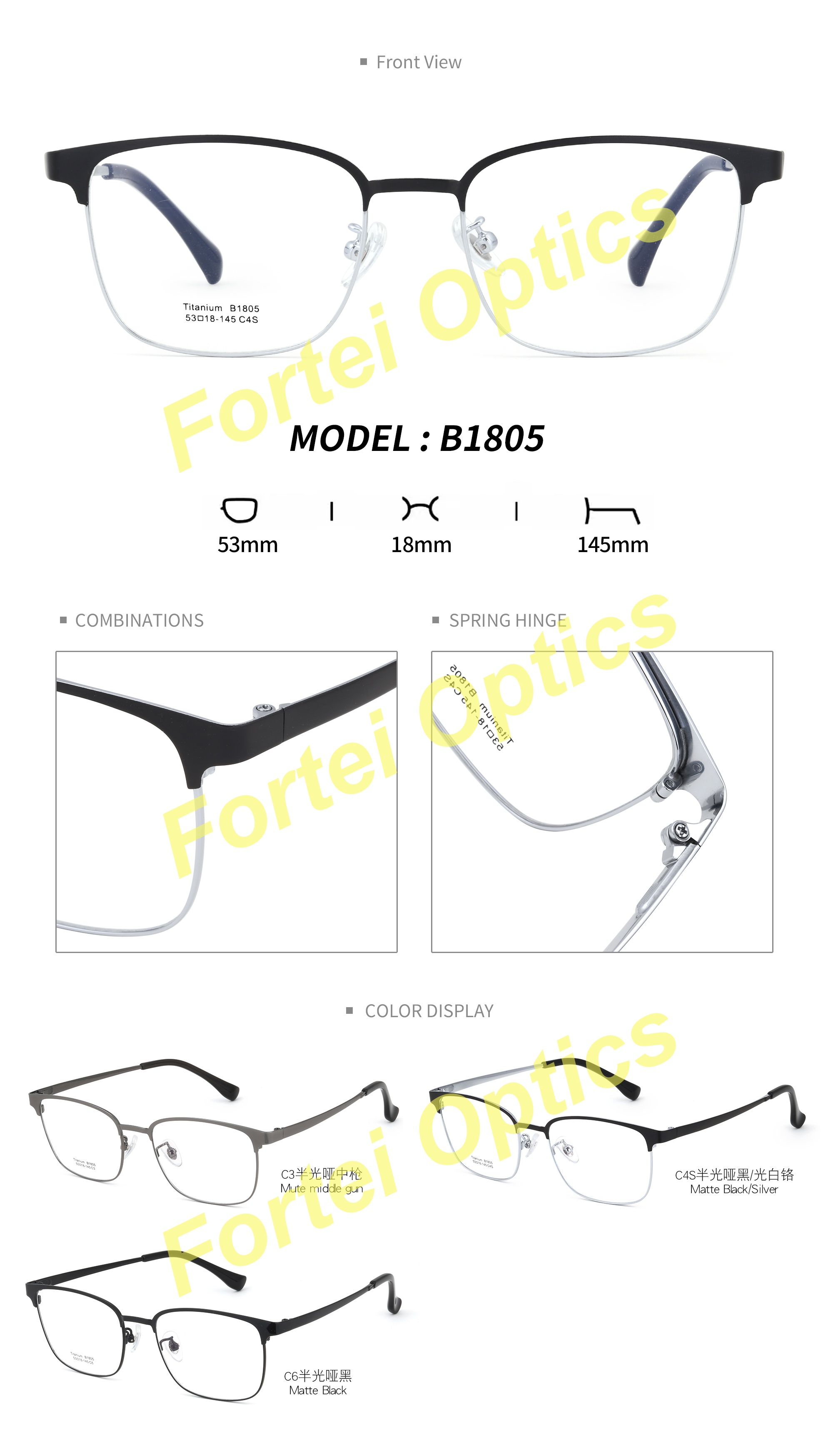 Elevate your eyewear collection today with Stainless Steel Front & Titanium Temples Eyeglasses—where rugged durability meets refined sophistication for a lifetime of style.
