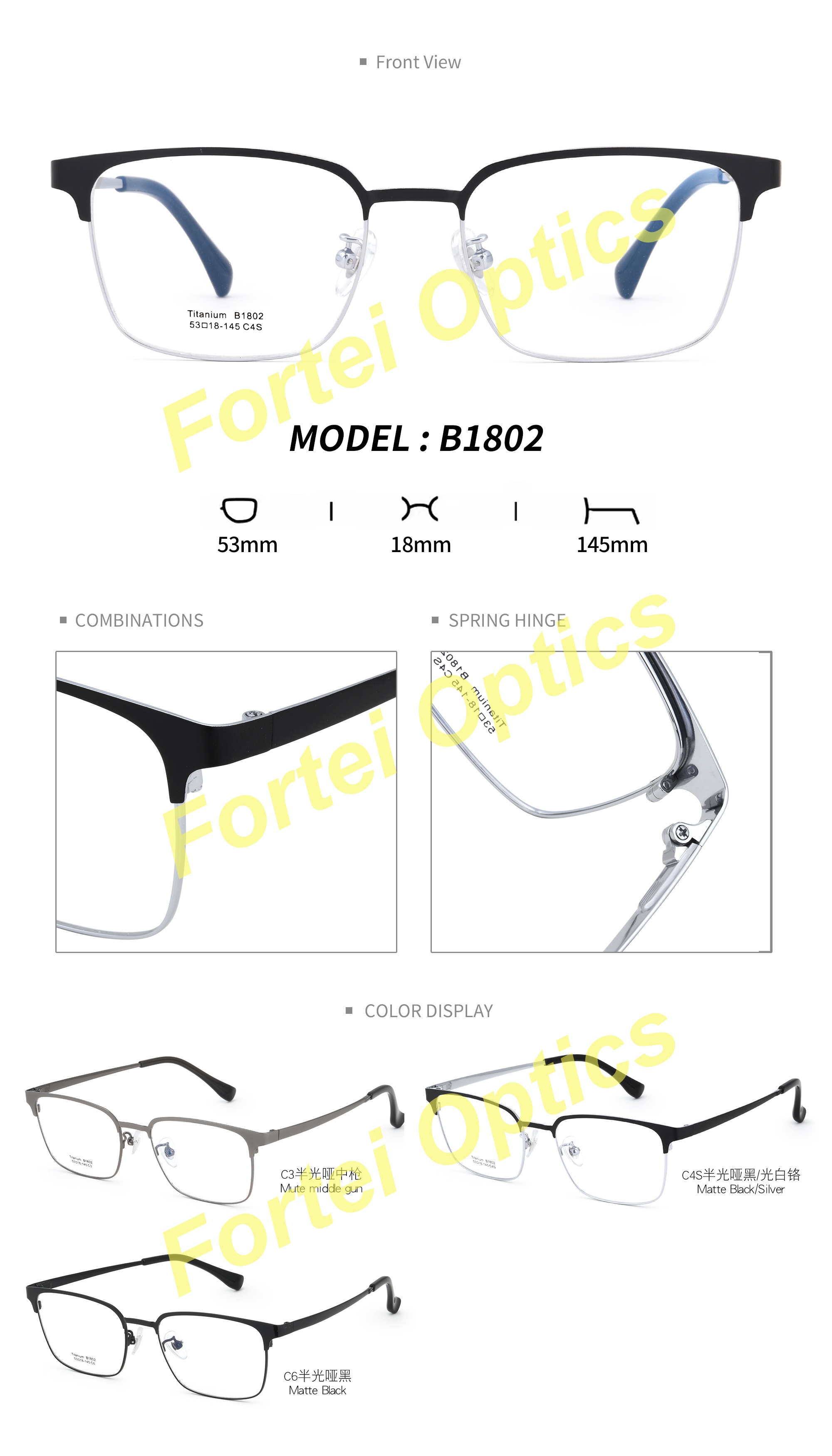 - Balanced Ergonomics: The stainless steel front provides structural stability, while titanium temples deliver adaptive comfort. Together, they create a frame that sits securely on your face, distributing weight evenly to eliminate pressure points—ideal for all-day wear, whether at the office or on a night out.